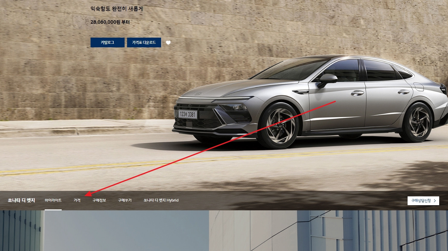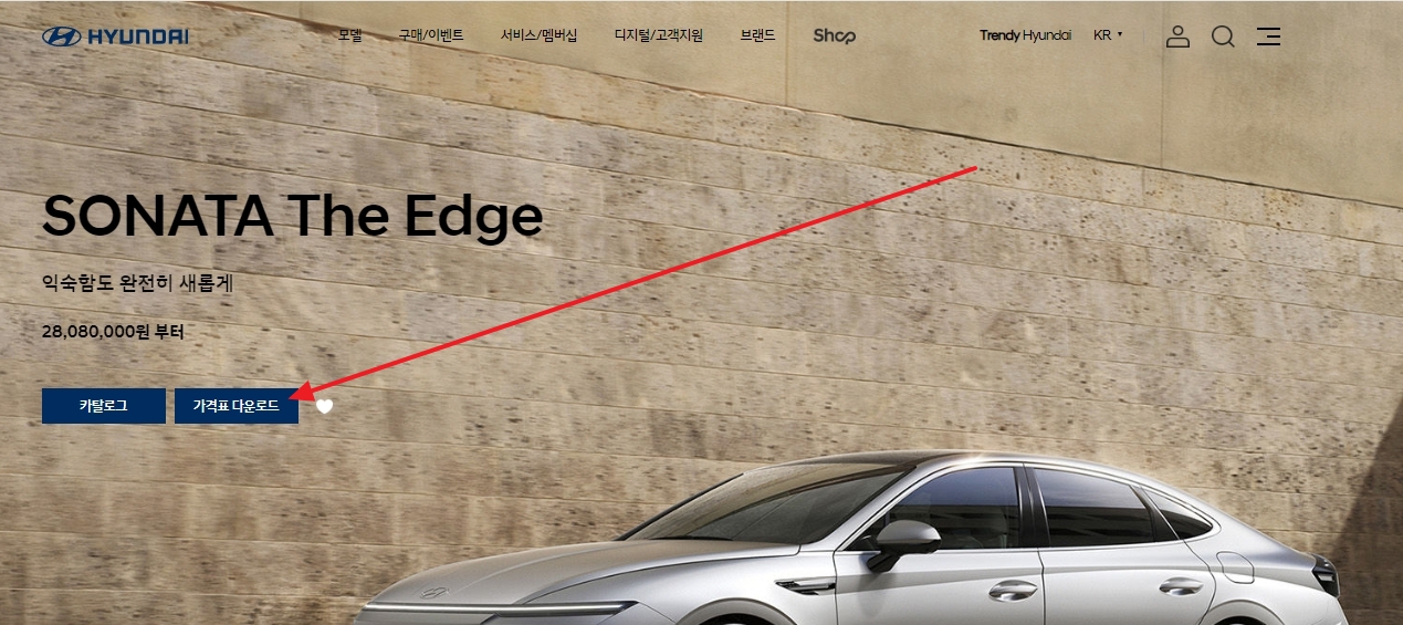 홈페이지 메인화면에서는 가격표 다운로드 버튼이 바로 보입니다. 이 버튼을 클릭하여 가격표를 다운로드할 수 있습니다. 이렇게 쉽게 접근할 수 있는 가격표는 소비자가 차량 구매를 고려할 때 유용한 자료가 됩니다.