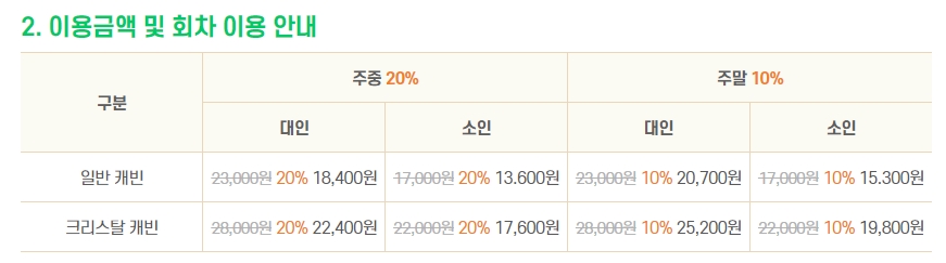 이용요금의 경우에는 여러 가격대와 서비스 옵션 중에서 선택할 수 있습니다. 일반 캐빈과 크리스탈 캐빈의 요금은 각각 23,000원과 28,000원이며, 각각의 소인은 17,000원과 22,000원입니다. 프리미엄 퀵 패스와 퀵 패스는 각각 210,000원과 250,000원으로 캐빈 1대를 이용할 수 있으며, 대인 및 소인 구분 없이 적용됩니다. 그러나 퀵 패스는 다른 이용객과 함께 탑승하며, 일반 캐빈은 40,000원, 크리스탈 캐빈은 50,000원입니다.