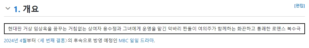 현재 공식 페이지가 마련되어 있지 않기 때문에 나무위키 페이지로 들어갑니다. 제목의 경우에는 이미 후속작으로 기사가 나왔고 전작의 종료일과 동시에 아마 다음 방영날짜부터 방영을 시작할 것으로 보입니다.