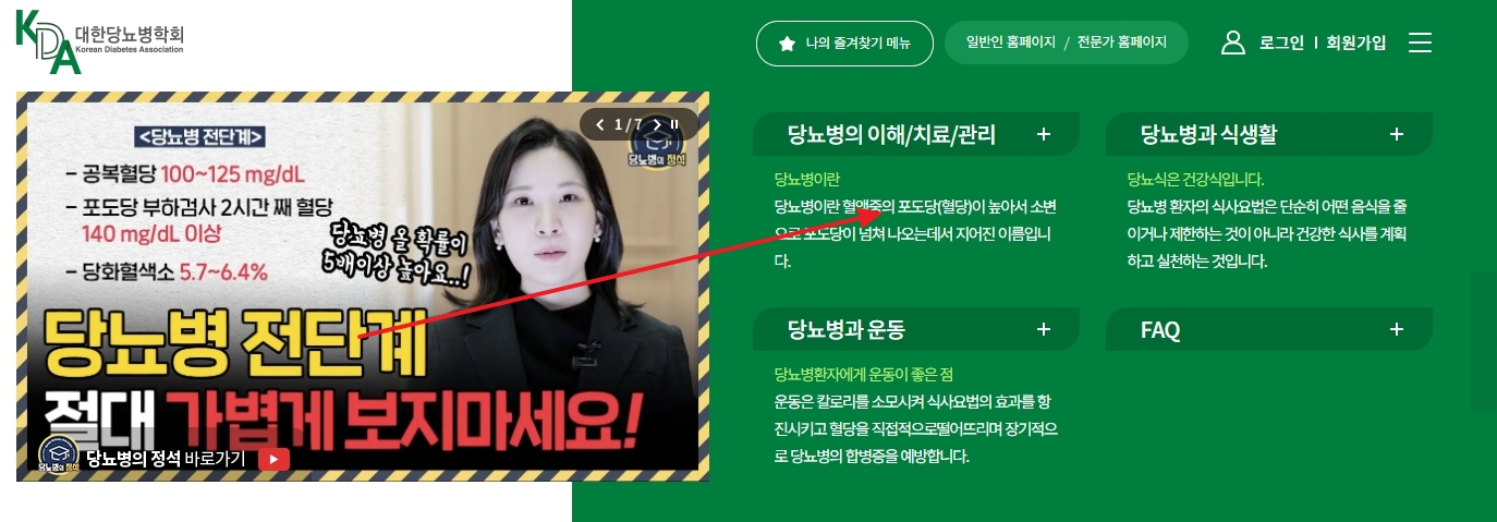 홈페이지에서 일반인을 위한 페이지를 선택하면, 당뇨병에 관한 기본적인 정보와 관리법에 대해 알기 쉽게 설명하는 콘텐츠에 접근할 수 있습니다. 이는 당뇨병을 직접 겪고 있는 사람뿐만 아니라, 가족 구성원이나 친구 등 당뇨병 환자를 돌보는 이들에게도 매우 유익한 자료가 됩니다.