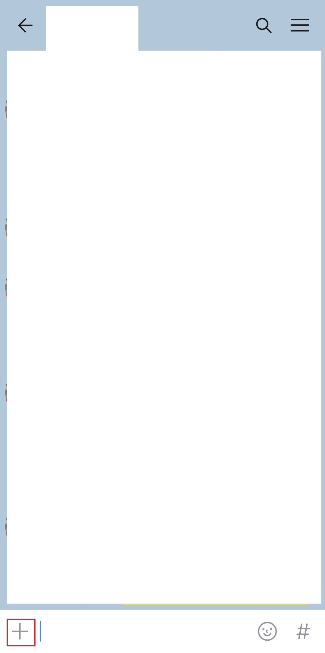 채팅 입력창 옆의 + 버튼을 클릭하여 추가 기능 메뉴를 엽니다. 여기서 앨범을 선택하여 사진을 선택할 수 있는 화면으로 진입합니다.