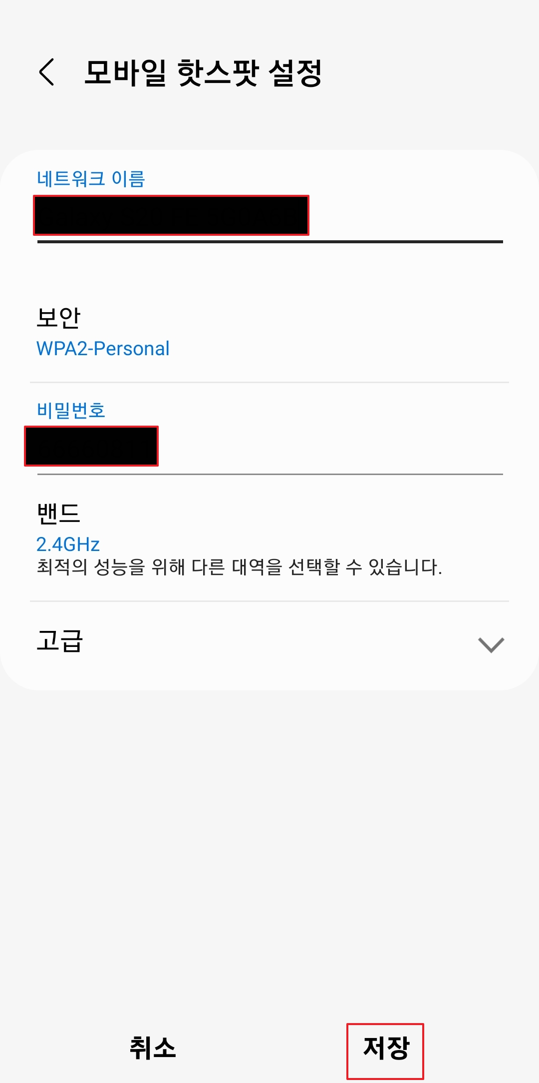 비밀번호 부분을 클릭하면 키보드가 활성화되어 새로운 비밀번호를 입력하고 저장할 수 있습니다. 이를 통해 사용자는 모바일 핫스팟의 접근성을 높이거나 제한할 수 있으며, 원하는 대로 비밀번호를 자유롭게 설정하여 사용할 수 있습니다.