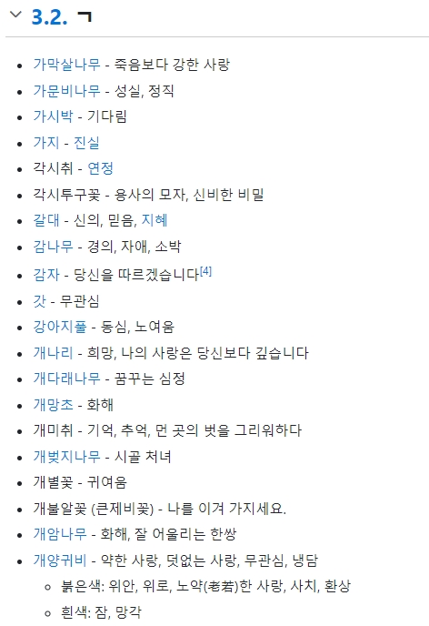 꽃말에 대한 정보를 탐색하기 위해 나무위키 페이지를 방문하는 것은 다양하고 방대한 꽃말을 한눈에 볼 수 있는 좋은 방법입니다. 이 페이지는 꽃말이란 무엇인지에 대한 간단한 소개부터 시작하여, ㄱ에서 ㅎ까지 한글 자모 순으로 꽃말을 정리해 놓았습니다.