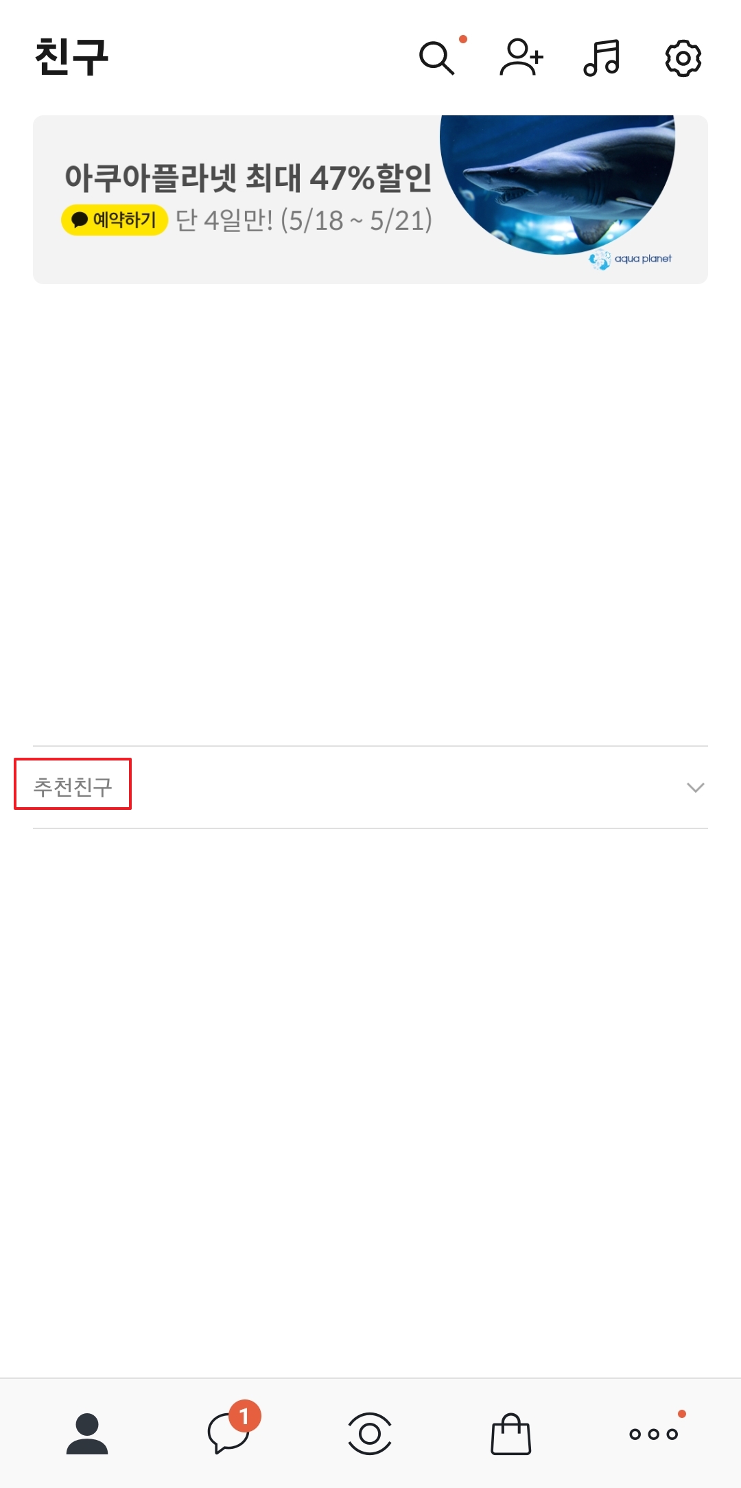 카카오톡 애플리케이션을 실행한 후 친구 탭에 들어가면 추천 친구 목록이 표시되는 것을 볼 수 있습니다; 이 목록은 어플리케이션 내에서 새로운 인맥을 발굴하고 확장할 수 있는 기능을 제공합니다.