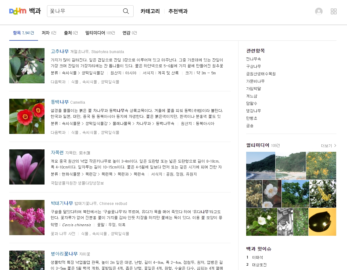 오늘은 꽃나무에 대해 알아보기 위해 다음백과 홈페이지를 방문했습니다. 이곳은 다양한 주제에 대한 정보를 제공하는 곳으로, 특히 이슈, 인물, 사건 등에 관한 자료가 풍부해 언제나 유용하게 사용할 수 있습니다. 방대한 지식의 바다에서 우리가 찾고자 하는 꽃나무에 대한 정보도 쉽게 접할 수 있었습니다.