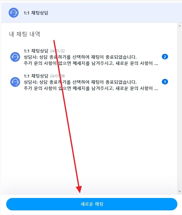 전화 외에도 채팅 상담이라는 또 다른 방법이 제공됩니다. 홈페이지의 좌측에 위치한 채팅 상담하기 버튼을 클릭하면 새로운 창이 열리고 여기서 새로운 채팅을 시작할 수 있습니다. 이 방식은 실시간으로 상담원과의 대화가 가능하여 많은 사용자에게 선호되는 상담 방식입니다.
