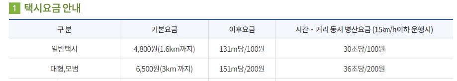 서울 택시 기본 요금