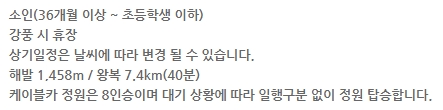 이용하실 때 유의하셔야 할 점은 케이블카가 매주 월요일은 휴장한다는 것입니다. 또한 특정한 기간에는 정비 및 안전 검사를 위해 휴장하는 날이 있을 수 있습니다. 예를 들어 4월 1일부터 3일까지는 집중 정비 기간으로, 그리고 4월 8일과 9일에는 정기 안전 검사로 인해 운영하지 않습니다.