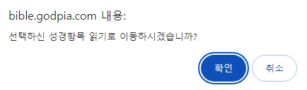 하지만 클릭했을 때, 이동하겠냐는 확인창이 나왔고, 저는 네를 클릭했지만, 제가 원한 구절로 바로 가지 않고 전체 성경 읽기 페이지로 이동해서 조금 아쉬웠습니다. 읽고 싶은 부분으로 바로 이동할 수 있었다면 더 좋았을 텐데 말이죠.