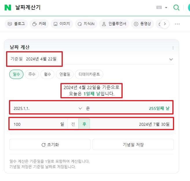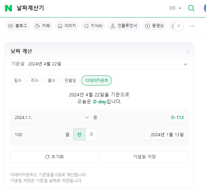 네이버 날짜 계산기