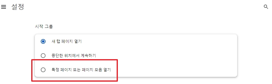 시작그룹 메뉴에서는 크롬을 시작할 때 어떤 페이지가 열릴지를 결정할 수 있습니다. 특정 페이지 열기를 선택한 후 새 페이지 추가 버튼을 클릭합니다. 이때, 원하는 시작 페이지의 주소를 입력해야 합니다. 예를 들어, 네이버를 시작 페이지로 설정하고 싶다면 www.naver.com을 입력하고 확인 버튼을 누르면 설정이 완료됩니다.