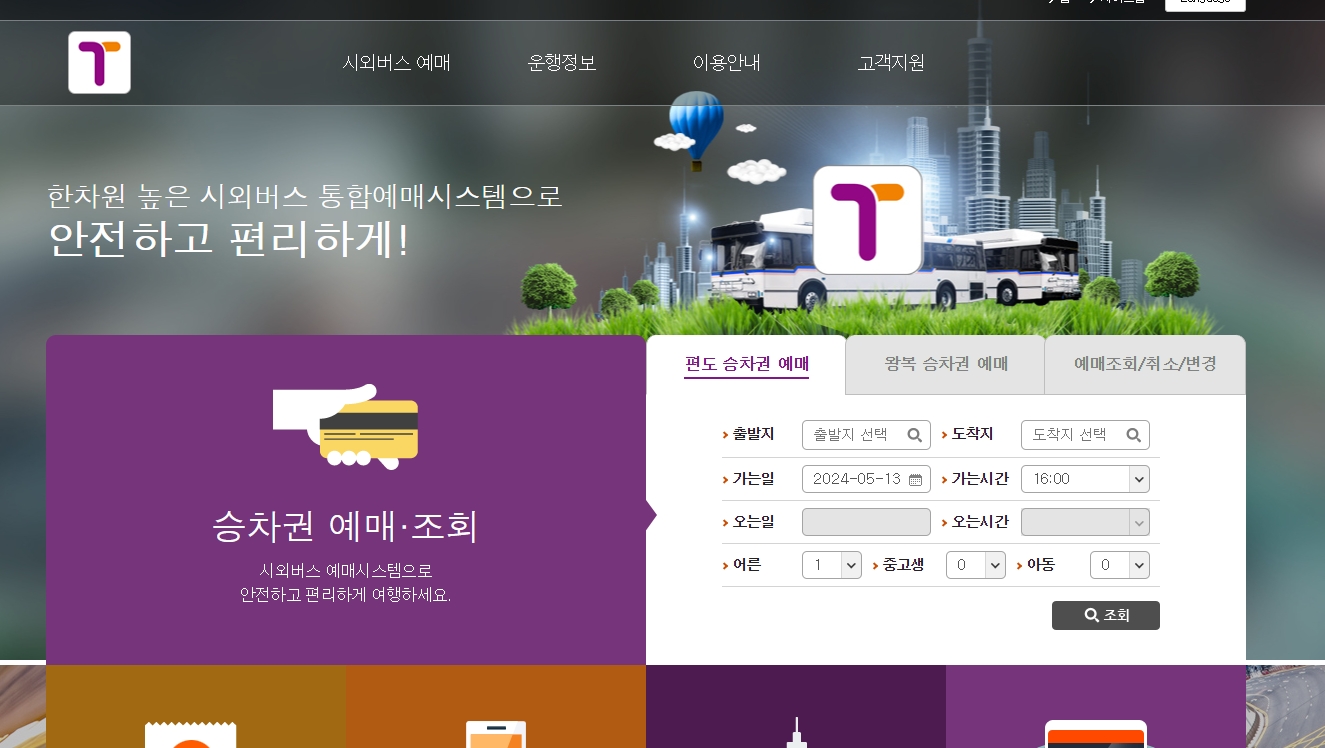 목적지에 따라 이동하는 예매 사이트가 달라질 수 있습니다. 출발지는 항상 광주 유스퀘어로 설정하고, 도착지를 원하는 장소로 선택하면 됩니다.