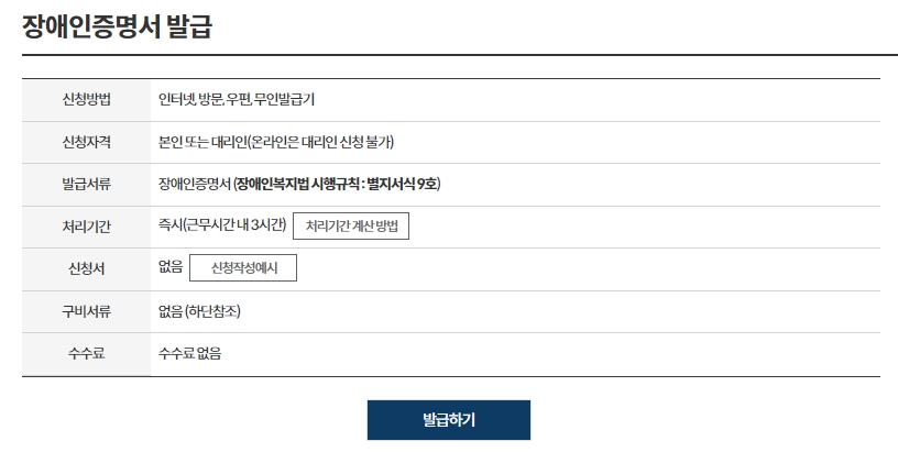 장애인 증명서를 발급받기 위해 별도의 신청서나 구비서류는 필요하지 않습니다. 또한, 발급 수수료도 없습니다. 장애인 증명서는 신청 즉시, 근무시간 내 3시간 이내에 발급됩니다. 이로 인해 빠르고 편리하게 장애인 증명서를 받을 수 있습니다.