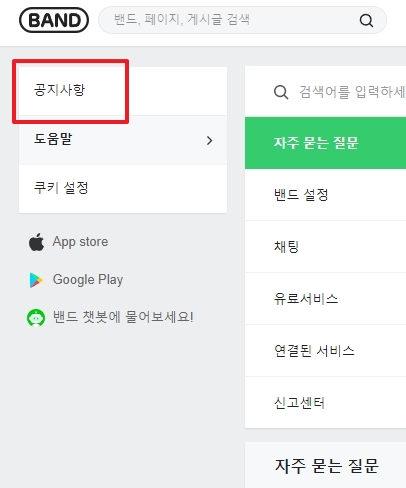 페이지가 이동하면 도움말 위에 있는 메뉴인 공지사항을 클릭합니다. 공지사항에는 다양한 업데이트와 중요한 정보가 포함되어 있습니다.