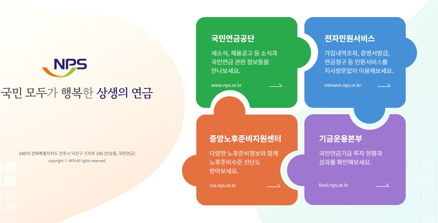 홈페이지에서 국민연금공단의 새소식, 채용공고 등 다양한 소식과 국민연금 관련 정보를 확인할 수 있습니다. 전자민원서비스를 통해 가입내역 조회, 증명서 발급, 연금청구 등 민원서비스를 지사 방문 없이 이용할 수 있으며, 중앙노후준비지원센터에서는 다양한 노후 준비 정보와 노후 준비 수준 진단도 받을 수 있습니다. 또한 기금운용본부에서는 국민연금기금의 투자 현황과 성과를 확인할 수 있습니다.