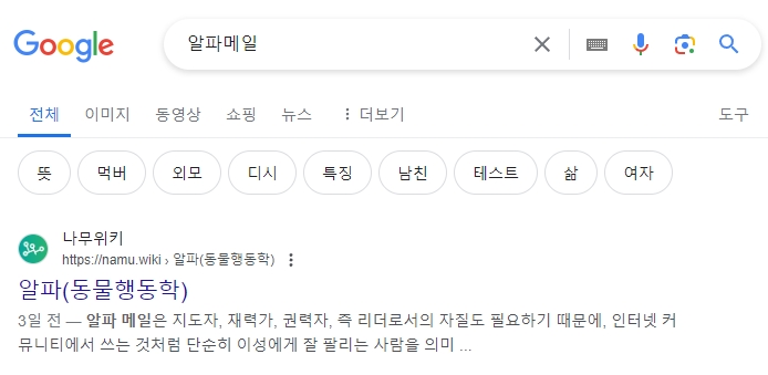 구글에서 알파메일을 검색하여 나무위키에 들어갑니다. 신뢰도가 100%는 아니지만 이런 정보 얻는 데는 나무위키 만한 곳이 없습니다.