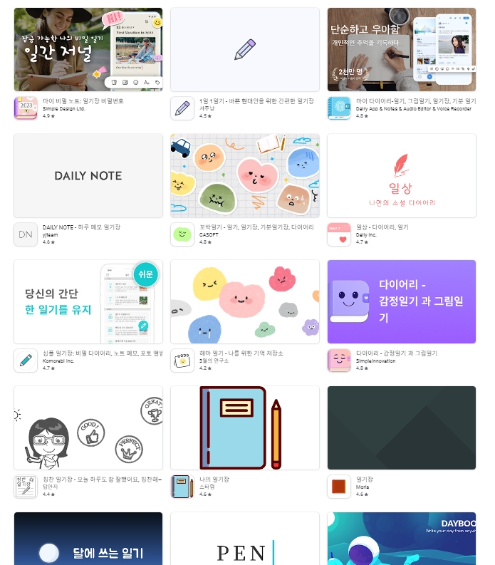 일기를 쓴다는 것은 나만의 작은 공간에서 하루를 되돌아보고, 느꼈던 감정과 경험을 솔직하게 기록하는 시간입니다. 스마트폰의 활성화로 인해 기존의 종이 일기장에서 벗어나, 어플로 일기를 기록하는 사람들이 많아졌습니다. 플레이스토어에는 수많은 일기장 어플들이 존재하며, 각각의 어플은 그만의 특색과 기능을 지니고 있습니다.