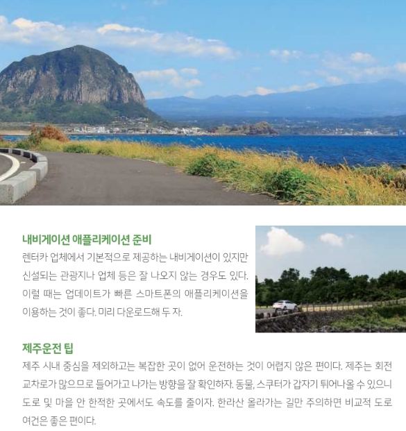 10. 제주도는 육지보다 렌트카가 저렴합니다. 보통 적당한 차량을 빌렸을 경우 모든 것을 다 포함해서 하루 2-3만원 정도하는 것 같은데요. 내비는 휴대폰 내비를 사용하는 것을 추천합니다.