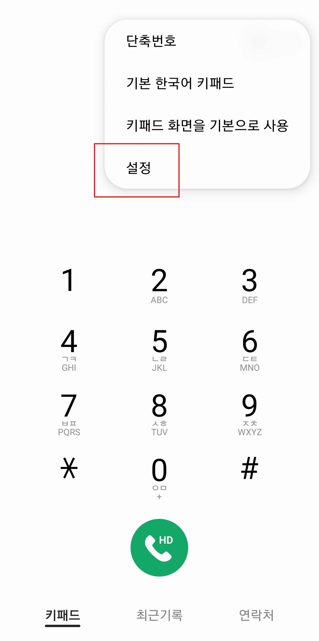 2. 전화 어플을 연 후, 우측 상단에 있는 점 세 개 버튼을 클릭합니다. 그러면 설정 메뉴로 이동할 수 있는 옵션이 나타납니다.