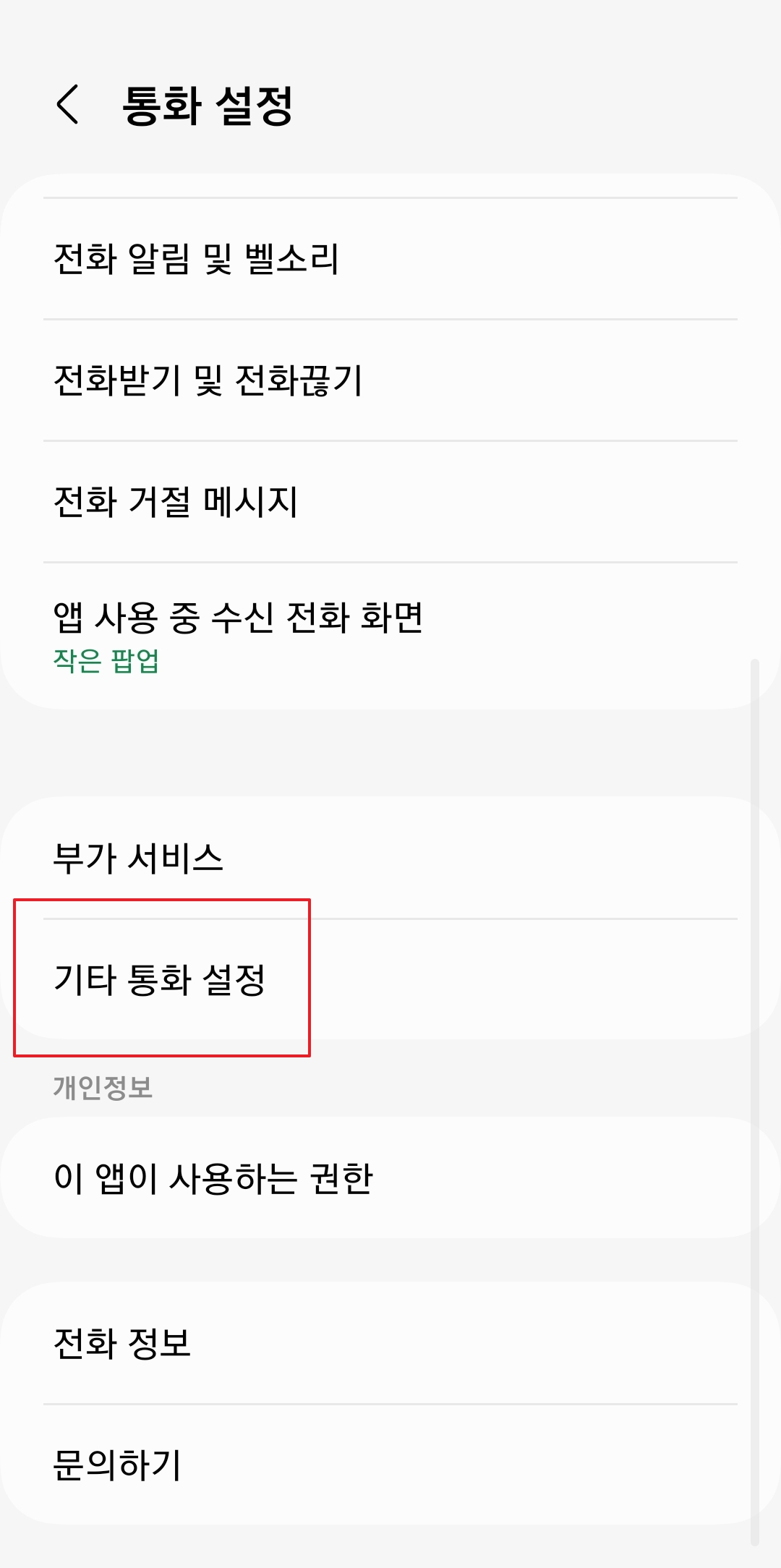 3. 설정 메뉴를 클릭하면 통화 설정 창으로 이동합니다. 여기서 화면을 아래로 스크롤하여 '기타 통화 설정' 메뉴를 찾습니다. '기타 통화 설정'을 클릭합니다.