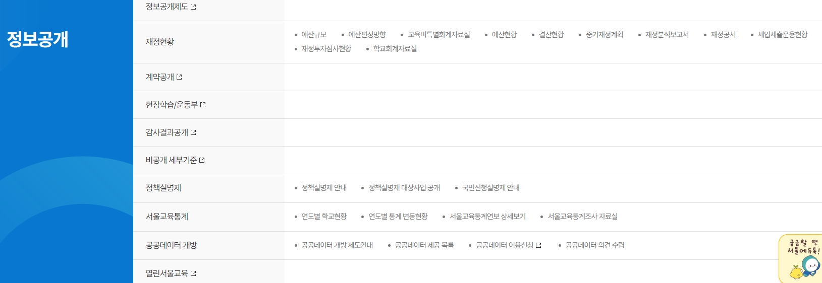 3. 정보공개 페이지에서는 재정 현황, 계약 공개 등 투명하게 공개된 정보들을 확인할 수 있어요. 학교회계자료실 같은 세부 항목도 있어서 학교 재정 운영에 대해 자세히 알아볼 수 있어요. 이 페이지를 통해 학교 예산이나 중기재정계획 등을 파악할 수 있어요.