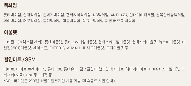좌측 메뉴의 지역별/업종별 찾기를 통해 보다 구체적인 사용처를 검색할 수 있습니다.