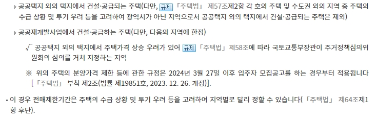 6. 공공택지 외의 택지에서 건설·공급되는 주택에 대한 전매제한 내용도 포함되어 있어요. 공공택지가 아닌 곳에서 주택을 공급할 때에도 투기 방지를 위해 일정 기간 동안 전매를 제한합니다.