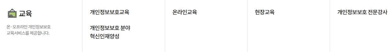 6. 교육 서비스도 제공되는데요, 개인정보보호 교육, 온라인 교육, 현장 교육 등 다양한 형태로 교육을 받을 수 있어요. 특히 개인정보보호 분야 혁신인재양성 프로그램도 있어서, 관련 분야에서 일하시는 분들께 정말 좋은 기회가 될 것 같습니다.