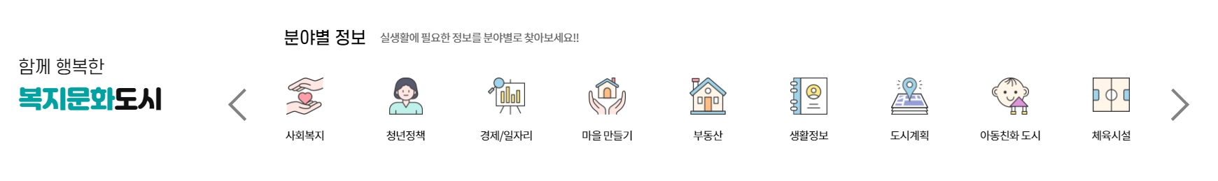 7. 분야별 정보 메뉴는 특히나 생활에 필요한 정보를 찾을 때 정말 유용했어요. 사회복지, 경제, 일자리, 부동산, 도시계획 등등 다양한 분야의 정보가 체계적으로 잘 정리되어 있어서, 딱 내가 필요로 하는 정보를 금방 찾을 수 있었어요. 특히 각 분야별로 나누어져 있어서 원하는 정보로 바로 갈 수 있다는 점이 마음에 들었어요. 시민들이 손쉽게 필요한 정보를 얻을 수 있도록 구성된 게 정말 편리하더라구요.