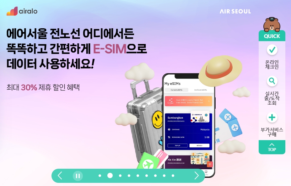 3. 에어서울에서는 다양한 프로모션을 통해 더 저렴하게 항공권을 예약할 수 있는 기회도 많아요. 이 E-SIM 서비스는 특히 여행 중 데이터를 마음껏 사용하고 싶은 분들에게 딱 맞는 서비스라 할 수 있죠. 특히 최대 30%의 할인 혜택을 받을 수 있으니 꼭 챙겨보세요!