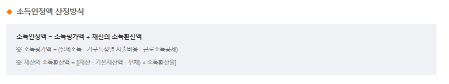 소득인정액의 계산은 소득평가액과 재산의 소득환산액을 합산하여 이루어집니다. 소득평가액은 실제 소득에서 가구 특성별 지출 비용과 근로소득공제를 차감한 금액이며, 재산의 소득환산액은 재산에서 기본재산액과 부채를 제외한 후 소득환산율을 적용하여 계산됩니다.