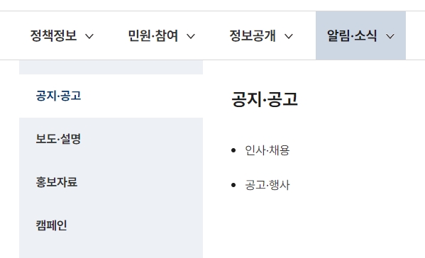 5. 공지사항과 함께 다양한 채용 정보도 확인할 수 있어요. 정부와 관련된 인사 채용 정보, 공고 행사 관련 자료도 빠르게 올라오기 때문에 관련 직종을 찾는 사람들에게 유용한 정보들이죠.