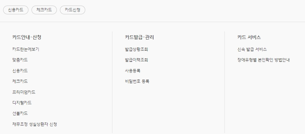 예전에는 체크카드에 신용카드 기능을 일부 추가하는 상품이 있었는데, 이런 카드의 경우에는 비록 주요 기능은 체크카드였지만, 결제 방식이나 관리 면에서 신용카드처럼 KB국민카드 홈페이지에 접속해서 여러 업무를 처리해야 했던 기억이 있습니다. 체크카드임에도 불구하고, 신용카드에 관련된 일부 기능 때문에 국민카드의 온라인 서비스를 통해 혜택 조회나 결제 내역 확인 등의 업무를 처리해야 했었죠.