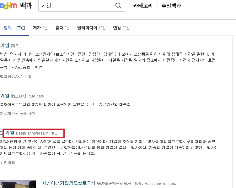 3. 검색 결과 중 세 번째 항목을 클릭해보세요. 여기에 기일과 제사 날짜에 대한 상세한 설명이 포함되어 있습니다. 다만, 인터넷 백과사전의 정보는 때로는 오류가 있을 수 있으니, 여러 출처를 참고하는 것이 좋습니다.