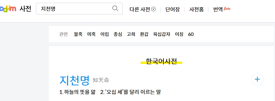 1. 다음 사전에 접속하면 지천명이라는 단어의 정의와 관련 정보를 찾아볼 수 있습니다. 다음 사전은 한글 단어의 의미와 쓰임을 이해하는 데 도움을 주는 온라인 도구로, 검색을 통해 다양한 설명과 예문을 제공합니다.
