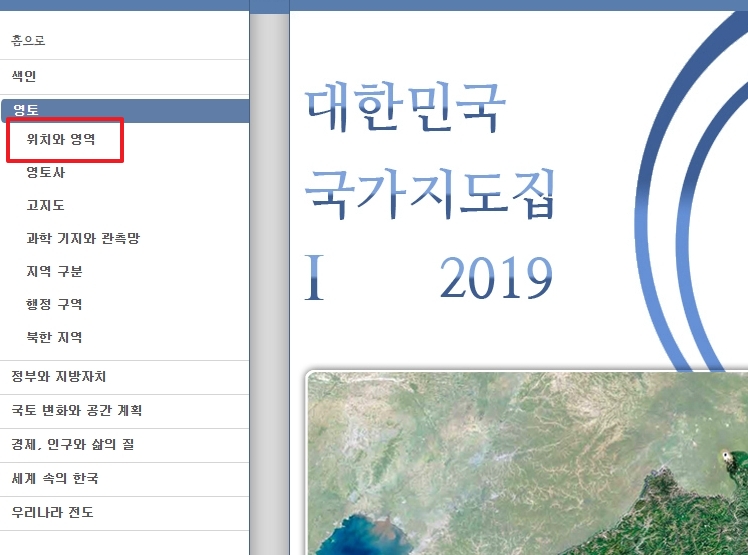 2. 홈페이지에서 대한민국 국가지도집1 ver 2019를 선택합니다. 이는 최신 데이터와 함께 대한민국의 영토 및 주요 특징들을 상세히 소개하는 자료로, 특히 영토의 면적과 위치를 심층적으로 다룹니다. 해당 버전을 선택하면 남한과 북한을 포함한 대한민국 전체를 비교적 최신의 관점에서 확인할 수 있습니다. 이 버전은 국가적 차원에서의 공식 통계를 기반으로 제작되어 신뢰도가 높습니다.