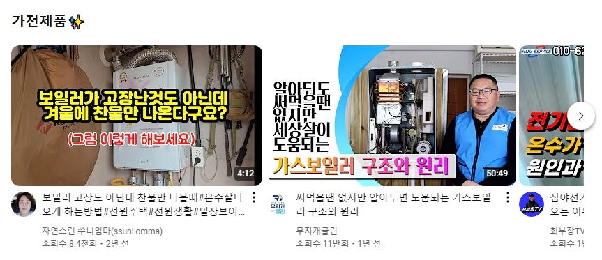 5. ‘가스 보일러 정상인데 온수 안 나올 때’와 같은 콘텐츠에서는 보일러 온수 온도를 설정하거나 조절기 이상 여부를 점검하는 방법을 구체적으로 설명합니다. 이 영상들은 사용자 스스로 문제를 해결하는 데 도움을 주며, 불필요한 서비스 호출을 줄이는 데 기여합니다.