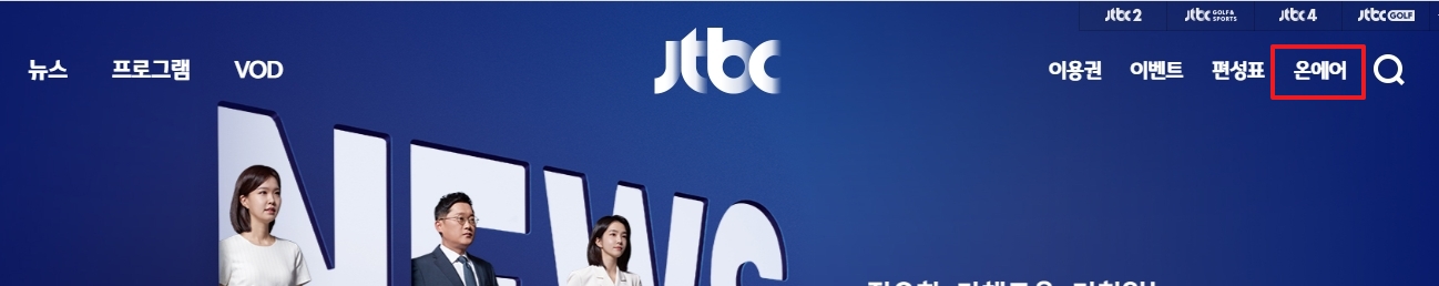 1. JTBC 온에어를 이용하기 위해 우선 JTBC 홈페이지에 접속합니다. 아래 사진은 JTBC의 메인 페이지 화면입니다.