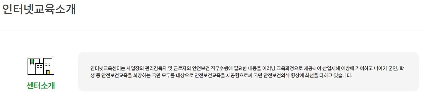 산업안전보건공단의 인터넷 교육센터는 근로자와 사업주를 대상으로 안전보건 교육을 온라인으로 제공하는 플랫폼입니다. 이곳은 다양한 산업군에서 발생할 수 있는 위험을 예방하고, 근로 환경의 안전성을 높이는 데 중점을 두고 있습니다. 산업재해를 줄이고 안전 문화를 정착시키기 위한 중요한 역할을 하고 있으며, 누구나 쉽게 접근할 수 있도록 설계되었습니다.