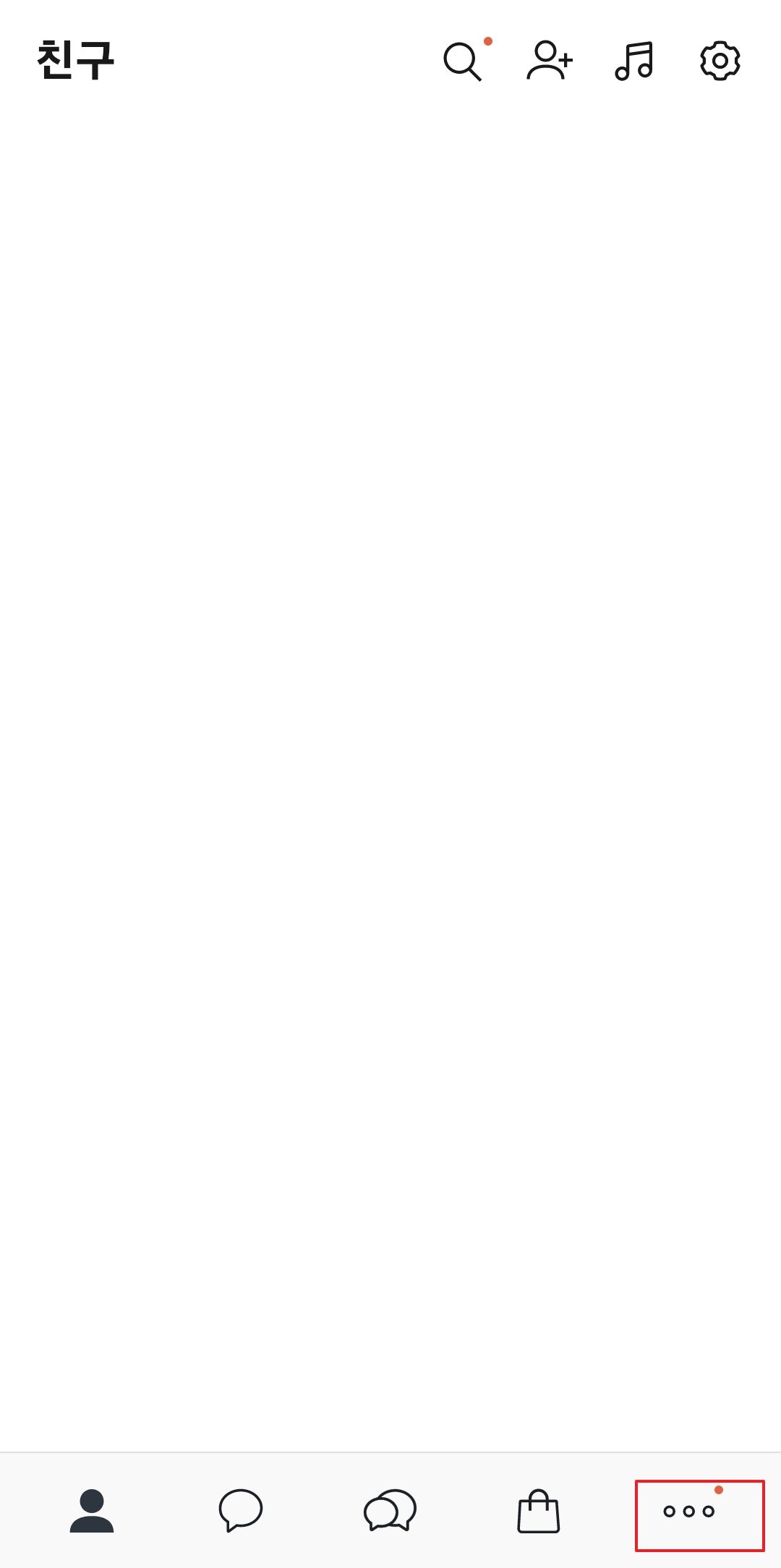 1. 카카오톡을 실행한 뒤, 하단 오른쪽에 위치한 점 3개 모양의 버튼을 클릭합니다. 이 버튼은 더보기 메뉴로 이동할 수 있는 역할을 합니다.