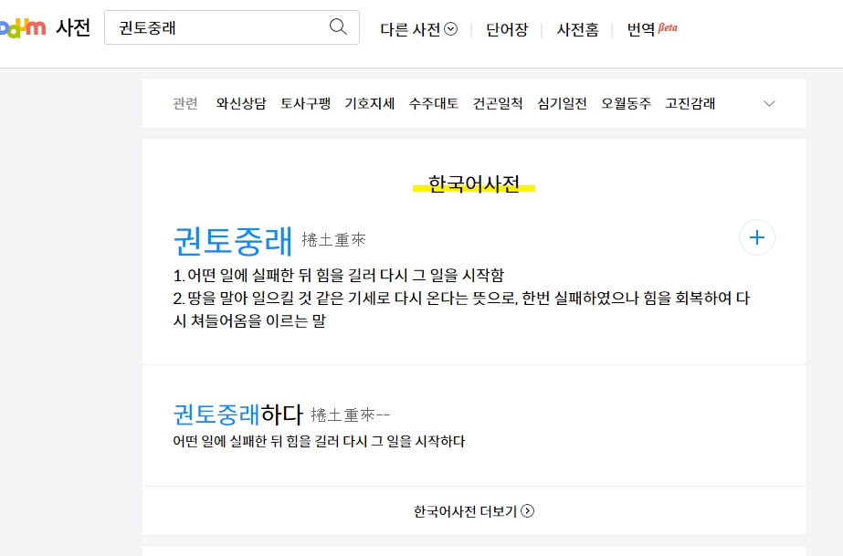 다음사전 홈페이지에 접속합니다. 다음사전은 다양한 한자성어와 그 뜻을 알기 쉽게 설명해주는 유용한 온라인 사전입니다.