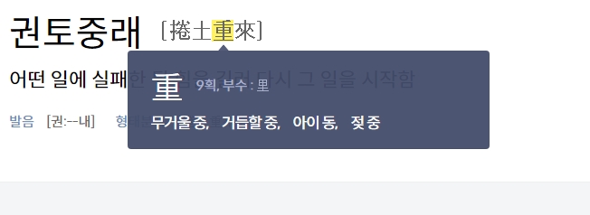 일반중(重)일반은 일반무거울중일반으로 여기서는 중대하거나 심각한 상황을 의미하며, 일반래(來)일반는 일반올래일반로 다시 오는 것을 의미합니다. 따라서 일반중래일반는 다시 무거운 힘을 가지고 도전한다는 의미를 담고 있습니다.