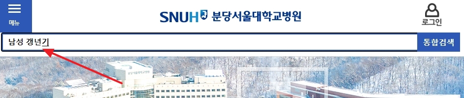 분당 서울대학교 병원 홈페이지에 접속합니다. 이곳에서 남성 갱년기와 관련된 정확하고 신뢰할 수 있는 정보를 얻을 수 있습니다.